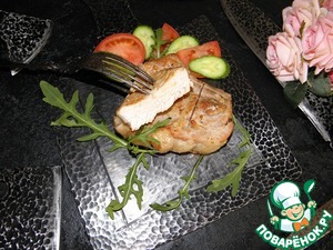 Отбивную уложить на кусок фольги и полить образовавшимся при жарке соком. -