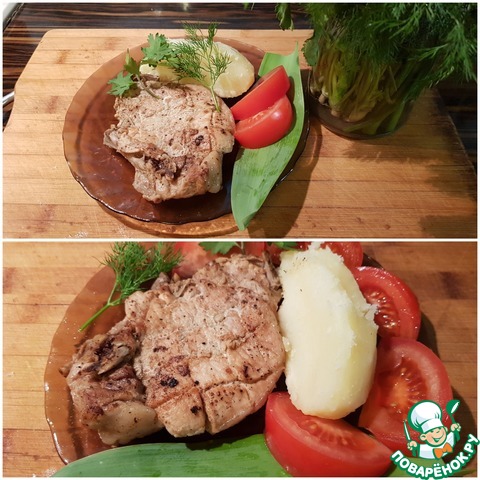 - Свинина (стейки на кости (ширина 1,5-2 см) (любые) у меня корейка в этот раз, я ее немного дольше готовила) — по вкусу