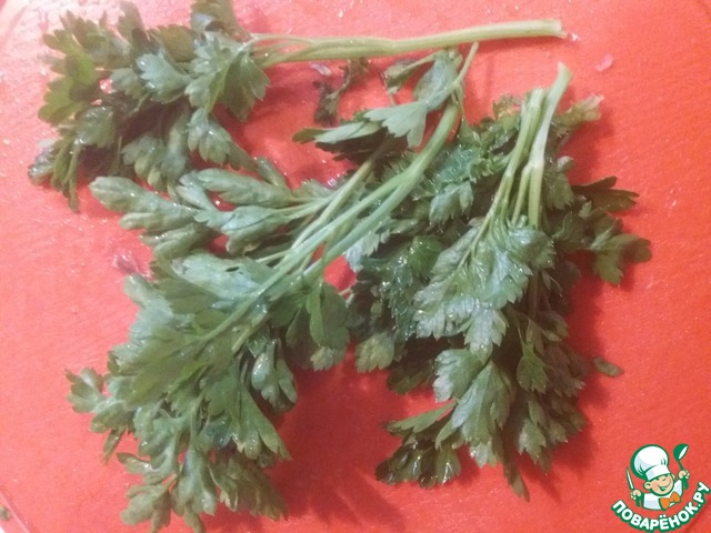 А это петрушка. Обычная. Домашняя. Без гма всякого... ее тоже нарезаем и добавляем в салат