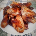 Крылышки замариновать минимум на час, время от времени перемешивая их в маринаде. В форму для запекания выложить крылья вместе с маринадом и отправить в духовку на 30 минут при 190-200 гр.
