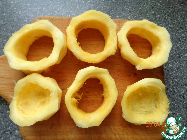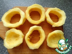 • Отварим рис. Кабачок очистим, порежем толстыми кольцами по 5.5 сантиметра или по Вашему желанию.