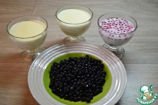 • Далее разливаем по формам или креманкам. В две креманки со сливками я добавила ягоды черники. Отправляем в холодильник минимум на 2 часа, до полного застывания.