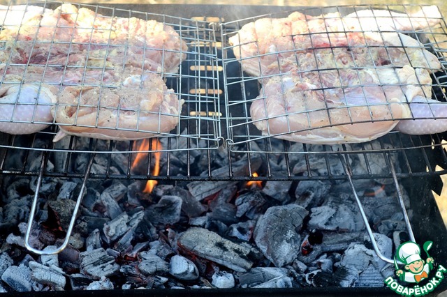 Особенно огонь будет вспыхивать при переворачивании цыплят. -
