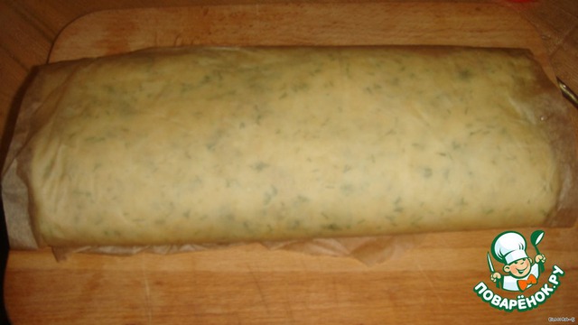 На прямоугольную доску, застелить пекарскую бумагу и выложить на неё картофель (сверху полейте немного масла, чтобы легче было придать форму).
