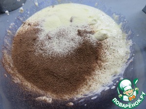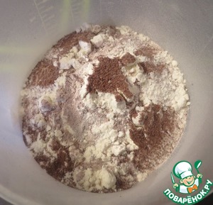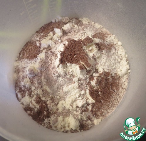 ~ добавить просеянную муку (черёмуховую 40 г. и пшеничную 200 г.), перемешать. -