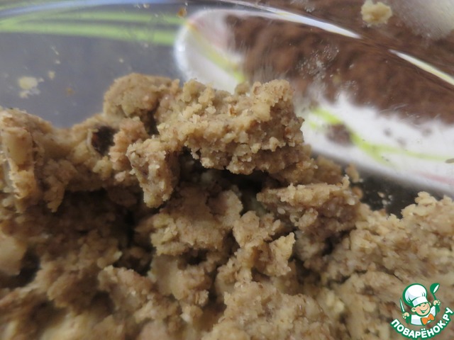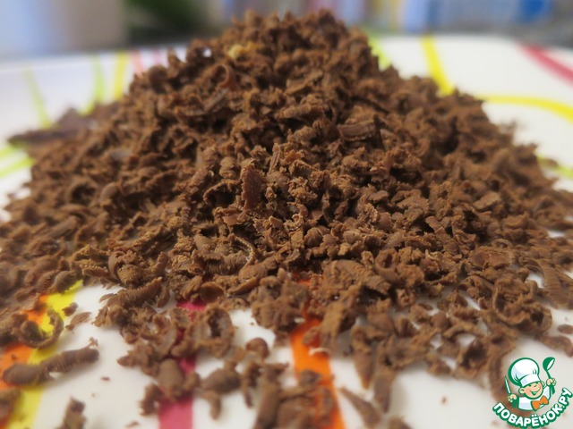 ~ измельчить шоколад (на тёрке) и орехи (на тёрке или пробить блендером до состояния ореховой пасты, если останутся крупные кусочки – ничего страшного),