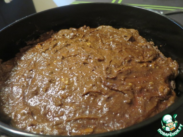 ~ поставить форму в разогретую до 180°C духовку примерно на 30 – 40 минут. Ориентироваться на начинку: она должна немного затвердеть. -