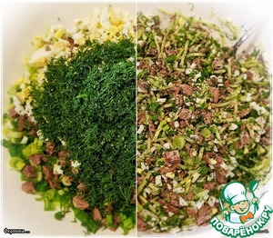 Укроп, чем мельче нарубите, тем лучше будет. Кстати, его можно еще и с солью немного растереть, если не лень.