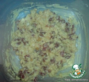 Добавляем орешки с клубникой, перемешиваем и убираем в холодильник где-то на час.