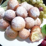Пончики готовы. Подавать теплыми, со сгущенкой или сахарной пудрой.