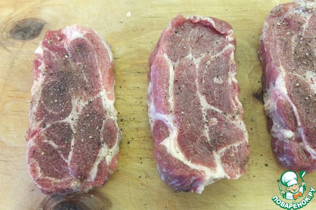 Обжариваем до готовности с двух сторон. Свинину можно считать готовой, когда жидкость, которая образуется на поверхности мяса станет прозрачной. -