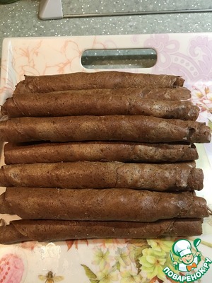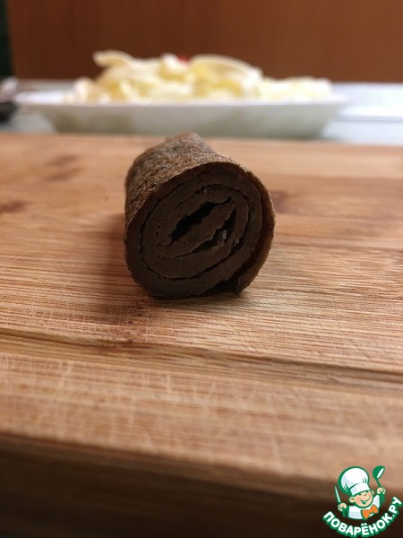 Складывать стопочкой, слегка промазав майонезом для мягкости.