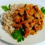 Предлагаю блюдо из нашей армейской юности. Конечно не каждый день давали, но раз в неделю было. Кто не ел - попробует, а другие может быть вспомнят. Когда приехал домой из армии - попросил маму приготовить такую перловку. Она очень удивилась, но сделала. Перловка сейчас конечно уже не та, что в наши добрые 80-е. Можно купить и быстрого приготовления, но попробовать "кирзу" (не пропаренную или как то еще обработанную) ради интереса можно.
