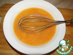 Яйца хорошенько разбалтываем венчиком с солью и перцем