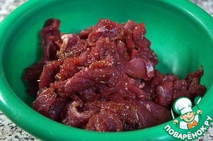 Говядину порезать очень тонко, если получится – буквально слайсами.