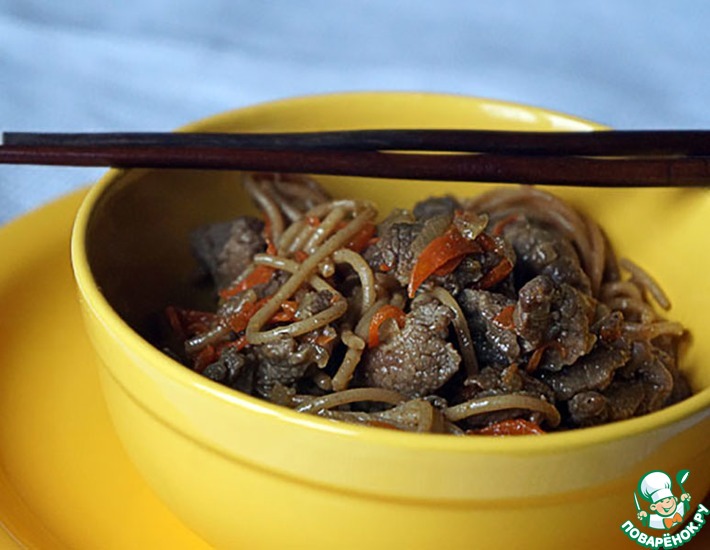 Рецепт «Говядина с гречневой лапшой и терияки»: