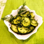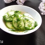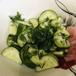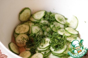 Влить маринад в миску с нарезанным огурцом, добавить укроп, перемешать и оставить минимум на 30 минут.