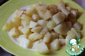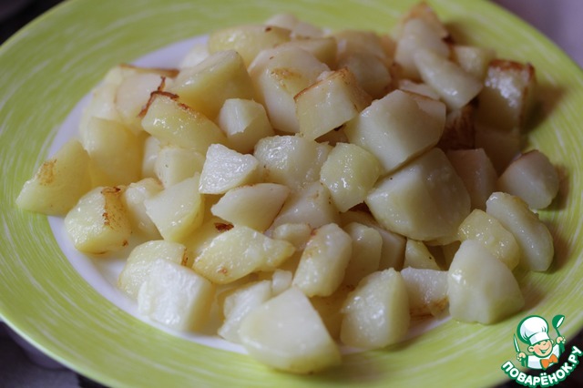 У меня картофель рассыпчатый, в более мелкой нарезке в кашу бы превратился при жарке)