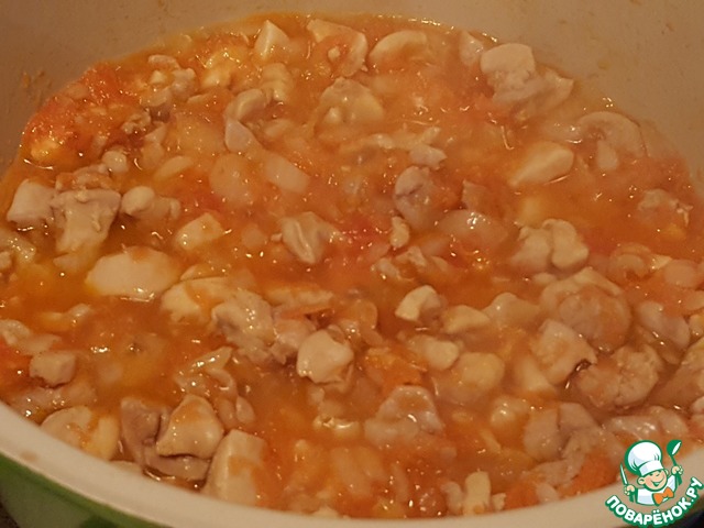 Очень удобно варить данный суп в кастрюле или жаровне, подходящей для обжаривания продуктов. Куриное филе нарезать средним кубиком.