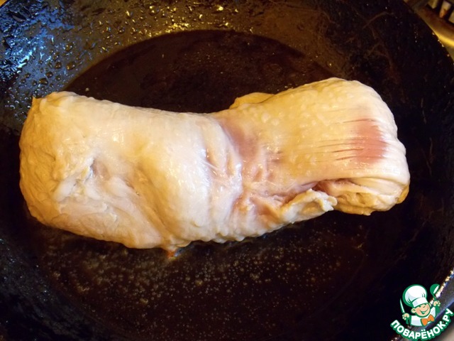 В сковородку налить масло, разогреть и обжарить, вымытую и обсушенную вырезку, со всех сторон до золотистой корочки. Снять со сковороды и отложить.