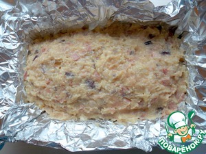 Накрыть вырезку остатками фарша и закрыть верх фольгой.