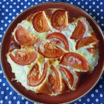 Выложить на курицу кружочки помидоров. Поставить форму в разогретую до 200 градусов духовку на 35-40 минут.