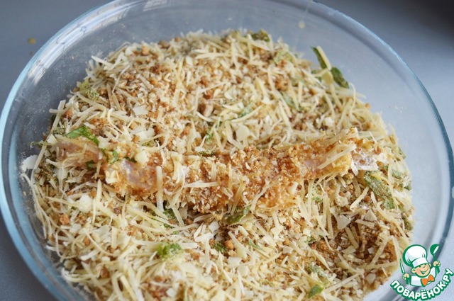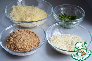 В миску добавьте толченый миндаль, панировочные сухари, тертый сыр, перец и нарезанную петрушку.