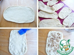 Каждый кусочек раскатать в овал, перевернуть на обратную сторону, чтобы гладкая сторона была снизу.
