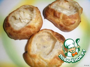 Перед подачей на стол наполняем наши корзиночки начинкой, не забываем немного полить соусом, посыпаем тертым сыром и… наслаждаемся подаренной нежностью.