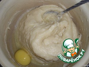 Вбиваем в теплое тесто яйцо и перемешиваем до однородной массы. -