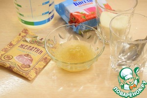 Желатин замочить в 3 ст. л. воды и убрать в сторонку минут на 10.
