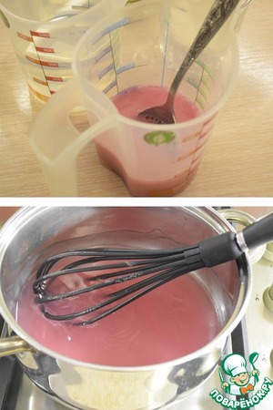 Кисель развести в 100 мл воды. Остальные 300 мл закипятить, добавить кисель и проварить до готовности. Полностью остудить.