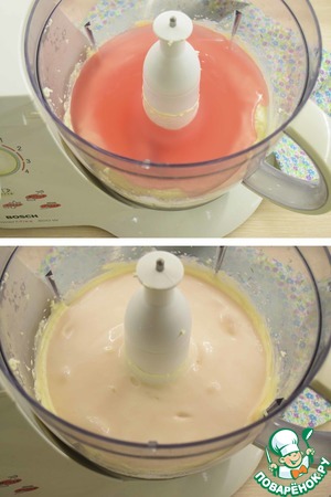 На водяной бане растворить желатин и немного остудить. Добавить в нашу массу и еще раз взбить.