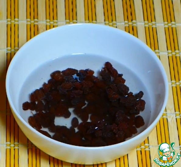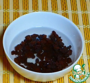 Изюм промыть, залить кипятком, дать постоять 3-5 минут