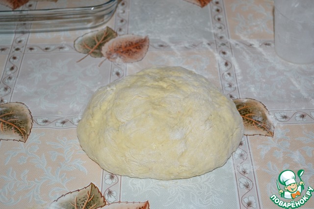 В эту массу всыпать муку, добавить сыр, натёртый на крупной тёрке и замесить тесто. Посуду с тестом накрыть полотенцем и поставить в тёплое место для подъёма на 1,5 часа. Тесто можно замесить в хлебопечке, как это сделала я.