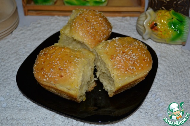 Когда пампушки поднимутся, смазать их взбитым желтком и посыпать кунжутом.
