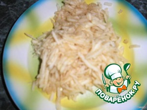 Яблоко очистить от кожицы и натереть на крупной терке.