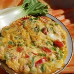 Легкое блюдо - воздушный омлет, наполненный зеленой фасолькой, помидорчиками, ароматным болгарским перчиком, пикантным лучком... Для любителей основательно позавтракать, для дам, сидящих на диетическом питании и для всех любителей овощей!