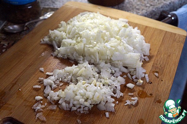 Лук порезать мелким кубиком.