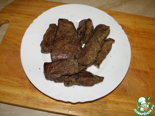 и жарить вместе с печенкой до мягкости.