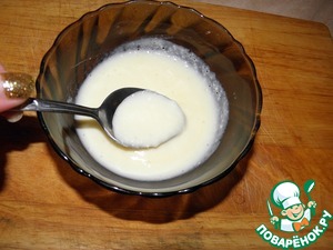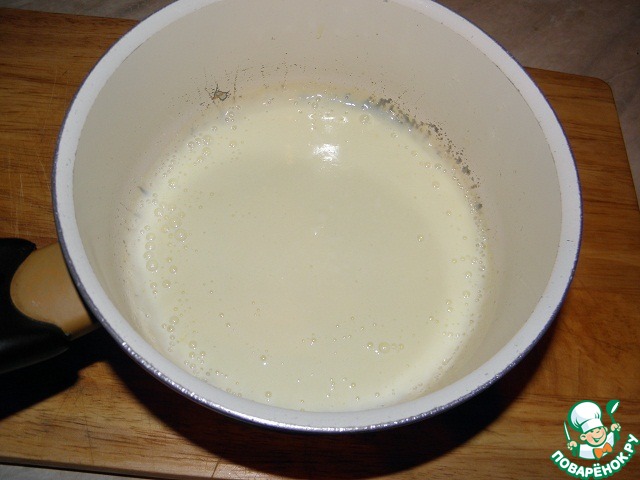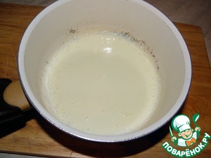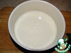 Миксером смешать 500 мл. молока, 3 яйца, 50 грамм сахара и сливки до однородности. -