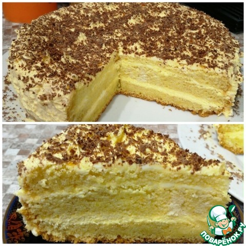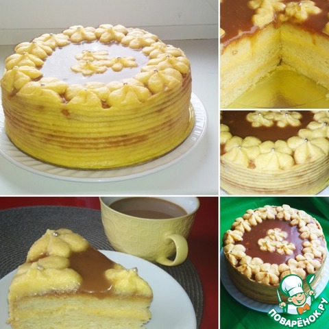 Крем очень легкий и нежный. Мои любят послаще, поэтому я добавила не сахар (как ты писала), а слой карамели.
