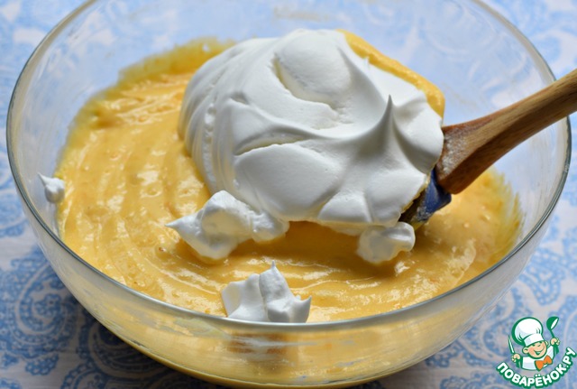 В несколько приемов ввести белки в тесто.