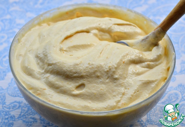 Крем. Mary сразу предупредила, что крем несладкий, поэтому я положила... уже не помню - 4 или 5 ложек сахара. А если бы не хватило, потом бы можно было добавить сахарную пудру - не понимаю, в чем проблема отрегулировать вкус по себе? Это я опять недовольных комментаторов вспомнила, извините...