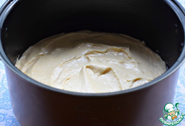 Выложить тесто в чашу МВ, смазанную растительным маслом, разровнять.