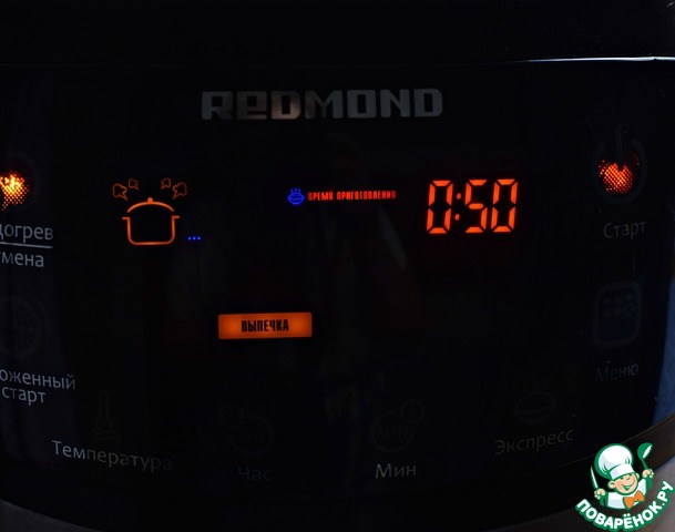 Выбрать режим ВЫПЕЧКА, выставить время 50 минут.