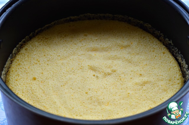 После звукового сигнала МВ, вынуть чашу с бисквитом и оставить при комнатной температуре на 10-15 минут.