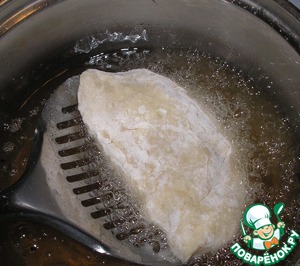 Разогреваю масло для фритюра. С помощью деревянной шпажки проверяю температуру. Наличие пузырьков вокруг неё, говорит о подходящей для обжаривания температуре. Аккуратно выкладываю смаженцы в масло, обжариваю с двух сторон до золотистого цвета. После обжарки положить на бумажное полотенце, чтобы убрать излишки масла.