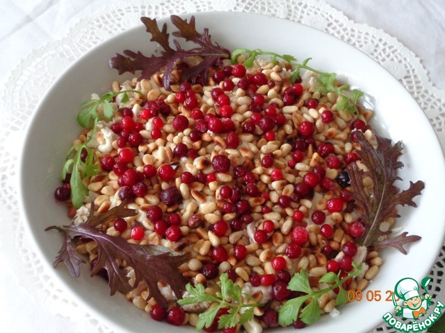 И завершим салат брусникой.