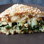 Также делала с большим количеством овсяной муки и меньшим количеством обычной муки. Возможно поэтому пирог не очень поднялся, но зато приобрёл золотистую хрустящую корочку и вышел более диетический.